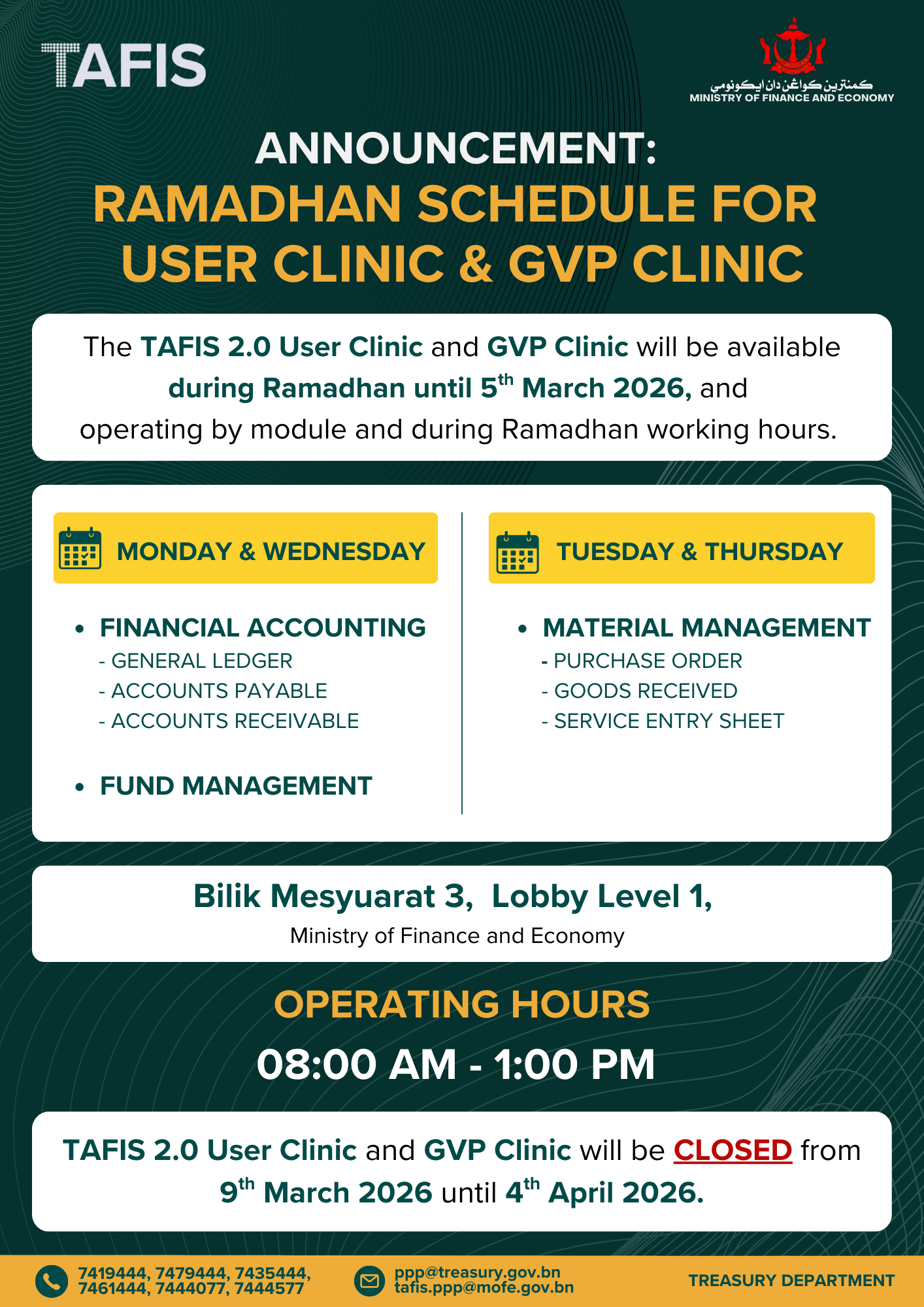 Email Address: TAFIS.PPP@MOFE.GOV.BN